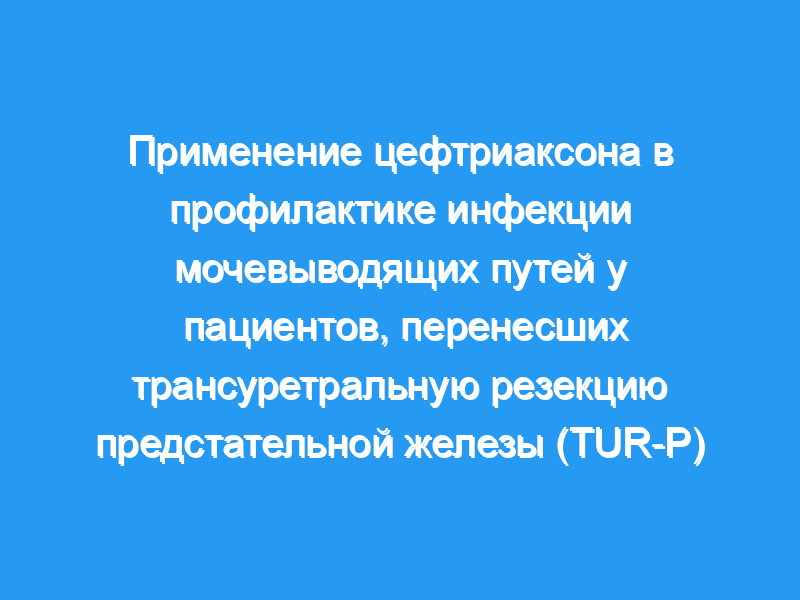 В течение 28-дневного периода исследования бактериурия появилась у шести пациентов, получавших цефтриаксон, и у 20 пациентов контрольной группы (p <, 0,005). На 3-4-й день после резекции только у двух пациентов, получавших цефтриаксон, была бактериурия по сравнению с 14 в контрольной группе (p <, 0,005). Кроме того, частота и продолжительность лихорадки и продолжительность госпитализации были короче у пациентов, получавших цефтриаксон.