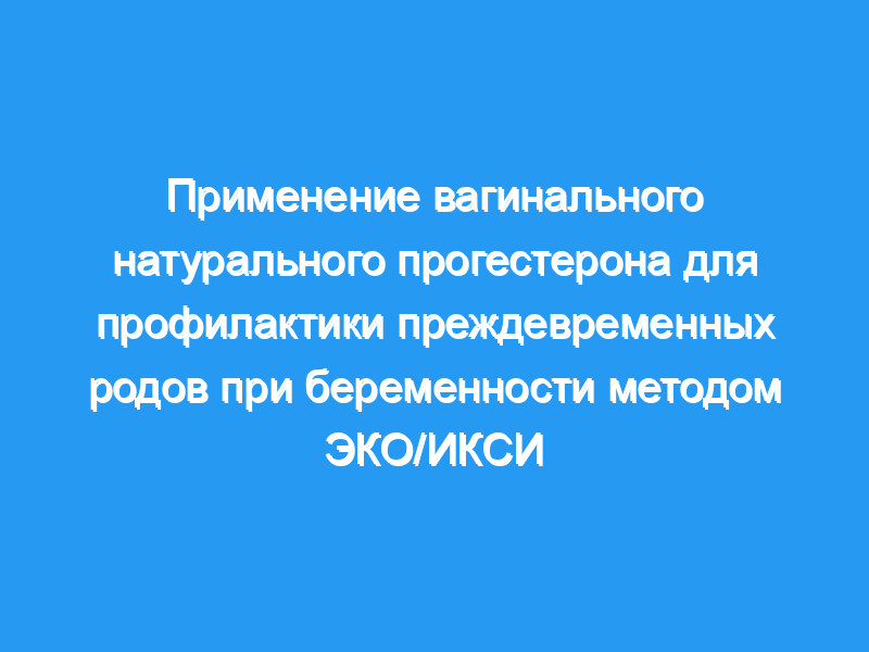 Целью данного исследования была оценка влияния вагинального естественного прогестерона на предотвращение преждевременных родов при беременности методом ЭКО/интрацитоплазматической инъекции сперматозоидов (ИКСИ).