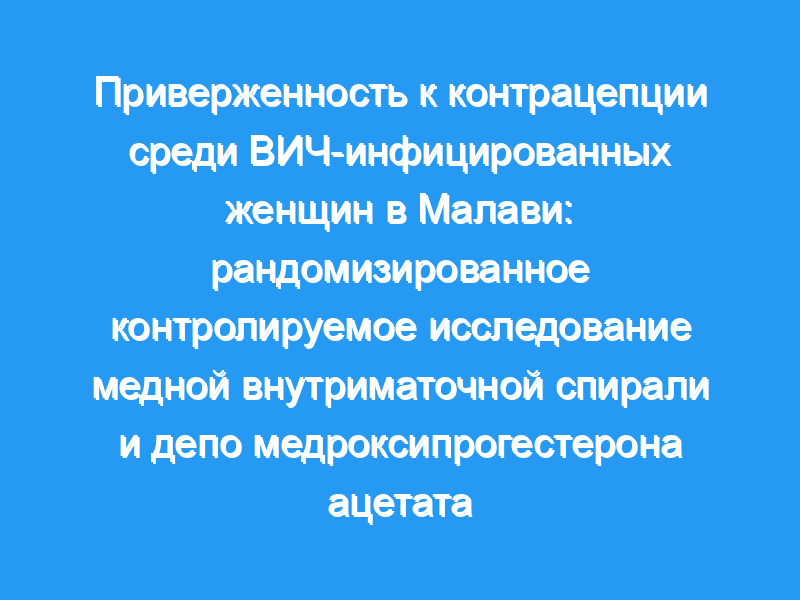 Приверженность к контрацепции между Cu-IUD и DMPA была одинаковой через 1 год. С одинаковой приверженностью и одинаковыми высокими показателями удовлетворенности среди пользователей обоих методов через 1 год, Cu-IUD предлагает безгормональную альтернативу DMPA. Последствия: Приверженность к Cu-IUD и DMPA одинакова через 1 год среди ВИЧ-инфицированных женщин, получающих ВААРТ в рандомизированном контролируемом исследовании. Несмотря на высокую удовлетворенность методом, неодобрение партнера и сильное кровотечение способствуют снижению приверженности. Получение метода, который отличается от метода первого выбора участника, не повлияло на приверженность.