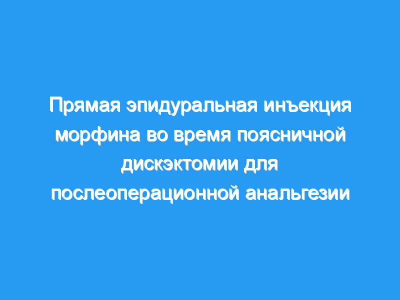 Пациенты, получавшие эпидуральный морфин, имели более длительный послеоперационный период без боли (6,28 против 2,37 часов) и нуждались в меньшей послеоперационной анальгезии (0,2 против 0,9 раза для парацетамола и 0,16 против 0,51 раза для морфина). Эпидуральная инъекция морфина под прямым наблюдением во время операции дискэктомии является эффективным и безопасным методом послеоперационного обезболивания.