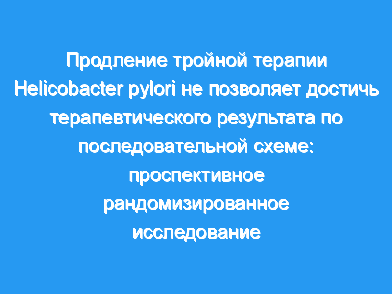 Семидневная тройная терапия позволяет достичь разочаровывающих показателей эрадикации у диспептиков и курильщиков. Продление тройной терапии до 10 дней существенно не улучшает скорость эрадикации. Новый 10-дневный последовательный режим более эффективен и одинаково хорошо переносится, чем 10-дневная тройная терапия.
