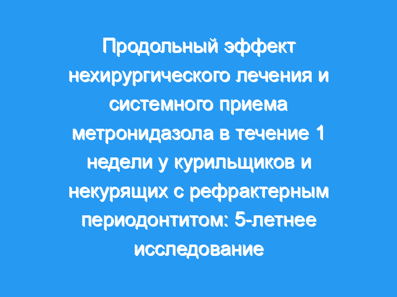 В этом двойном слепом исследовании мы оценивали лечение пародонта, включающее начальное нехирургическое лечение, системное введение метронидазола в течение 1 недели, а затем последующие наблюдения для удаления чешуек и выравнивания корней каждые 6 месяцев в течение 5 лет. Исследуемая популяция состояла из 64 человек (37 курильщиков и 27 некурящих), средний возраст 36,3 (+/-3,0 SD) года, с тяжелым заболеванием пародонта. После первоначального масштабирования и строгания корней пациенты были случайным образом распределены на группы вмешательства или плацебо: 400 мг метронидазола или плацебо вводили с 8-часовыми интервалами в течение 1 недели. Участники прошли обширное клиническое обследование пародонта. Десневую щелевую жидкость (GCF) анализировали на наличие спирохет и гранулоцитов. Образцы культивировали на Actinobacillus actinomycetemcomitans (A.a.), Porphyromonas gingivalis (Pg.) и Prevotella intermedia (Pi.).