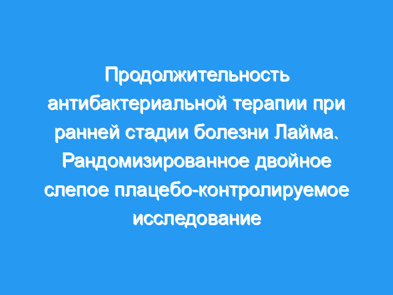 Оценить различную продолжительность перорального лечения доксициклином и комбинацию перорального доксициклина и однократной внутривенной дозы цефтриаксона для лечения пациентов с ранней стадией болезни Лайма. Дизайн: Рандомизированное двойное слепое плацебо-контролируемое исследование.