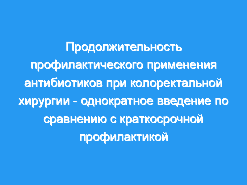 В проспективном рандомизированном исследовании изучался эффект комбинации 4 г мезлоциллина и 0,5 г метронидазола для профилактики инфекций в однократной дозе непосредственно перед операцией по сравнению с кратковременной дозой в 2 дня, введенной 90 пациентам с резекцией колоректальной карциномы.