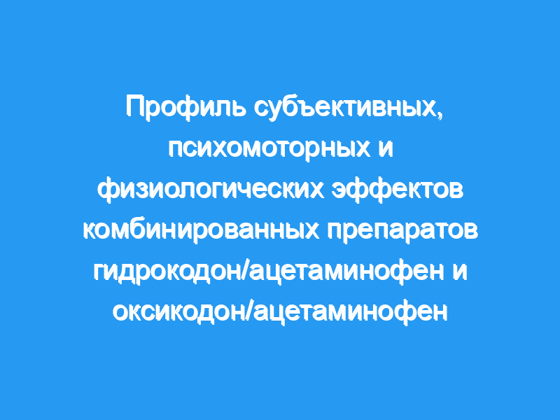 Сравнить у одних и тех же людей две обычно назначаемые дозы препаратов гидрокодон/ацетаминофен и оксикодон/ацетаминофен по их субъективным, психомоторным и физиологическим эффектам у здоровых добровольцев. Дизайн: Рандомизированное, плацебо-контролируемое, двойное слепое, перекрестное, шестисессионное клиническое лабораторное исследование с участием 16 здоровых участников (27.2 +/- 4.4 лет). Участники получали 5 мг гидрокодона/325 мг ацетаминофена, 10 мг гидрокодона/650 мг ацетаминофена, 5 мг оксикодона/325 мг ацетаминофена, 10 мг оксикодона/650 мг ацетаминофена, 650 мг ацетаминофена и плацебо в разных сеансах.