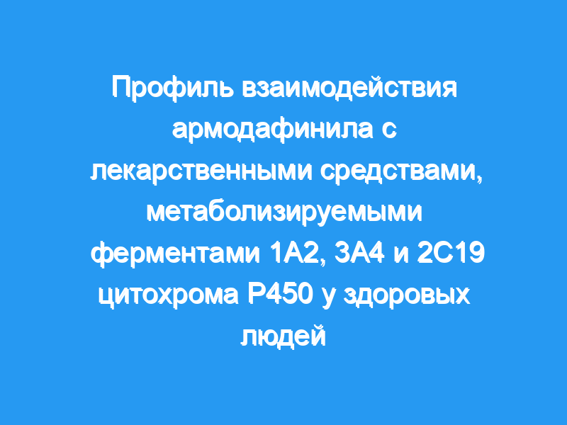 Армодафинил, средство, способствующее бодрствованию, представляет собой чистый R-энантиомер рацемического модафинила. Целью данной статьи является обобщение результатов трех клинических исследований лекарственного взаимодействия, оценивающих потенциал лекарственного взаимодействия армодафинила с препаратами, метаболизируемыми ферментами цитохрома Р450 (CYP) 1A2, 3A4 и 2C19. В исследовании 1 оценивалась способность армодафинила индуцировать активность CYP1A2 с использованием перорального кофеина в качестве субстрата зонда. В исследовании 2 оценивалась способность армодафинила индуцировать активность CYP3A4 в желудочно-кишечном тракте и печени с использованием внутривенного и перорального мидазолама в качестве субстрата зонда. В исследовании 3 оценивалась способность армодафинила ингибировать активность CYP2C19 с использованием перорального омепразола в качестве субстрата зонда.