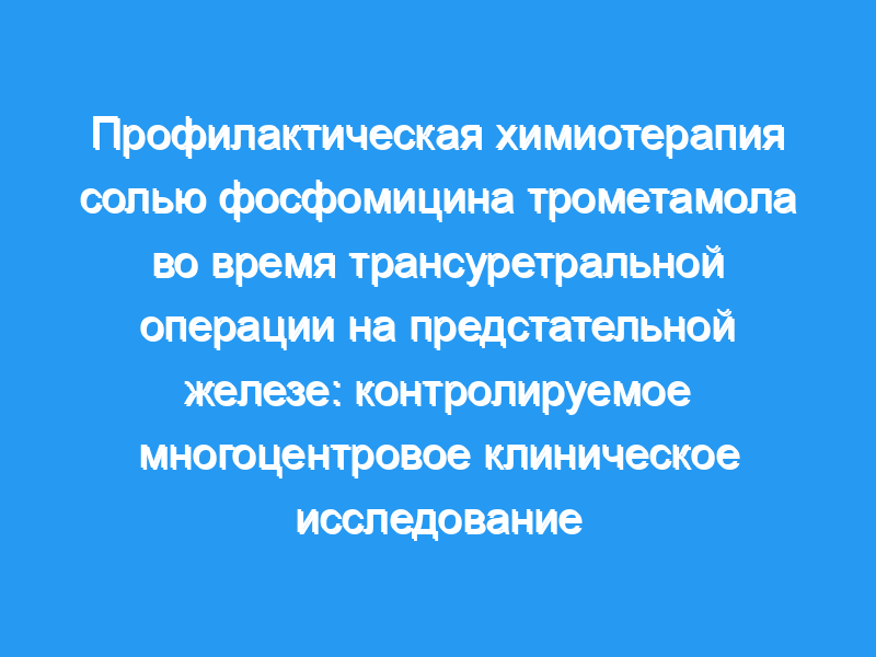 В 24 урологических отделениях Италии было проведено проспективное рандомизированное контролируемое исследование с участием 675 пациентов, перенесших трансуретральную резекцию предстательной железы, с использованием трех различных химиопрофилактических методов лечения: амоксициллина (AMX), ко-тримоксазола (CTX) или фосфомициновой соли трометамола (FT) для предотвращения послеоперационной инфекции мочевыводящих путей.