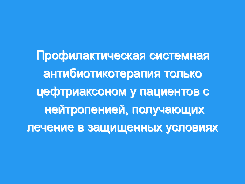 Профилактическая системная антибиотикотерапия только цефтриаксоном (CRO) была протестирована у пациентов с апластией, получавших полную дезактивацию кишечника и лечившихся в защищенных условиях.