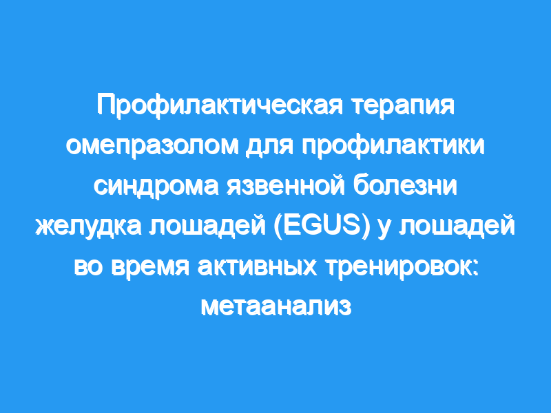 Объединить данные рандомизированных контролируемых исследований (РКИ), чтобы устранить предвзятость в отчетности и оценить эффективность профилактического омепразола в профилактике EGUS у тренирующихся лошадей, и, во-вторых, сравнить профилактические дозы омепразола. Дизайн исследования: Мета-анализ.