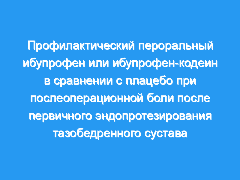 Мы пришли к выводу, что профилактическая доза 800 мг ибупрофена перорально оказывает опиоидосберегающий эффект с тенденцией к уменьшению болевых ощущений в течение первых часов после эндопротезирования тазобедренного сустава.