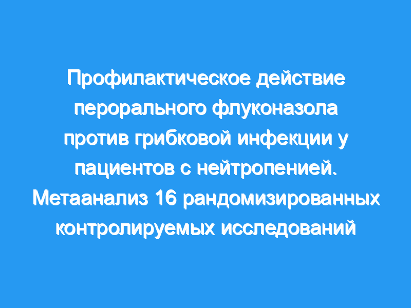 Флуконазол широко используется для профилактики грибка. Хотя исследования с участием реципиентов трансплантации костного мозга (ТКМ) ясно показали полезность перорального приема флуконазола, результаты исследований у пациентов с нейтропенией, не реципиентов ТКМ, были противоречивыми. Поэтому авторы провели мета-анализ для оценки эффективности профилактики флуконазолом при нейтропении, вызванной химиотерапией.