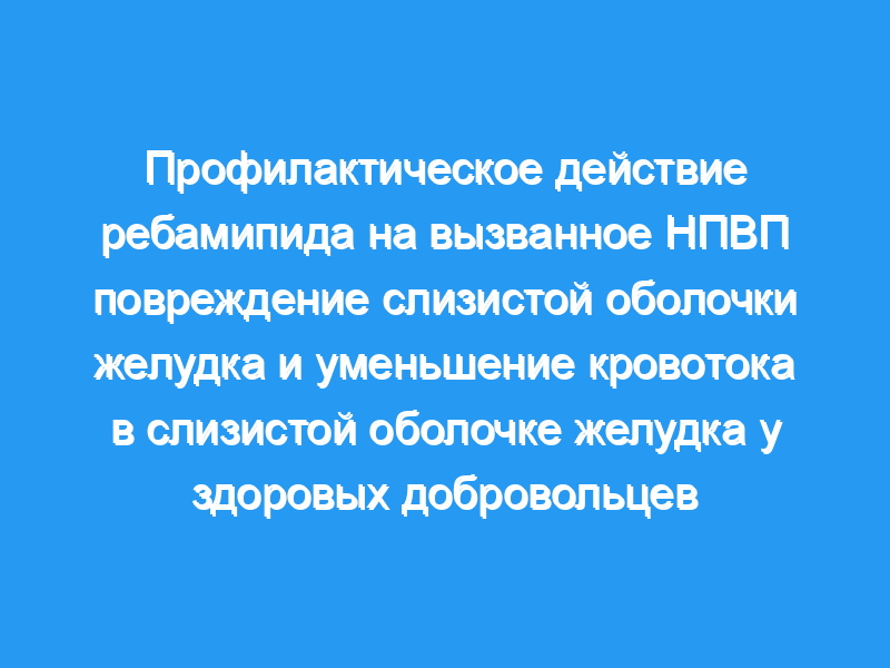 1,3+/-1,0 соответственно, P=0,032). GMBF в группе плацебо был значительно снижен в антральном отделе по сравнению с исходным уровнем, с 2,8+/-0,5 до 2,0+/-0,5 единиц тканевой перфузии (Р=0,005). Не было никакой разницы в изменении GMBF в группе ребамипида.