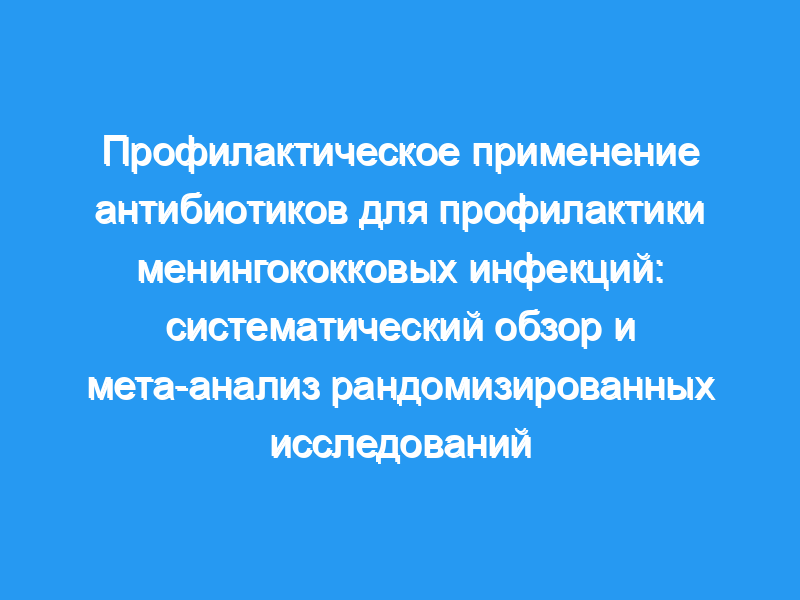 Был проведен систематический обзор и мета-анализ рандомизированных контролируемых исследований с целью изучения эффективности схем профилактического лечения в предотвращении вторичных случаев менингококковой инфекции (т.е. случаев заражения после контакта с человеком, больным менингококковой инфекцией) и в уничтожении Neisseria meningitidis из глотки здорового колонизированного индивидуума.