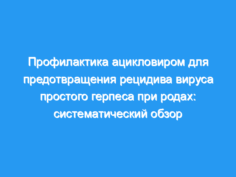 Инфекция, вызванная вирусом простого генитального герпеса (ВПГ), является одним из наиболее распространенных вирусных заболеваний, передающихся половым путем, в Соединенных Штатах. Перинатальная передача вируса плоду или новорожденному является серьезной проблемой при пораженных беременностях. Наша цель состояла в систематическом обзоре опубликованных данных, чтобы оценить влияние профилактического ацикловира, назначаемого беременным женщинам в ближайшем сроке, на частоту рецидивов генитального герпеса при родах, количество кесаревых сечений, выполненных при клинических рецидивах ВПГ или продромальных симптомах, и распространенность вирусологического выявления ВПГ при родах. Источники данных: Наш поиск включал MEDLINE (1966 — март 2003), LILACS, EMBASE, материалы конференций, рефераты с научных форумов и библиографии опубликованных статей со следующими медицинскими рубриками: ацикловир, беременность, вирусный герпес и Herpesviridae. Методы отбора исследований: Проспективно разработанные критерии включали рандомизированные клинические испытания с подробным описанием применения ацикловира во время беременности у женщин с ВПГ, опубликованные в виде аннотации или статьи. В анализ были включены пять исследований с общим охватом 799 пациентов. Сведение в таблицу, интеграция и результаты: Исследования были проанализированы независимо тремя авторами. С помощью программного обеспечения RevMan модель с фиксированными эффектами использовалась для расчета суммарного отношения шансов (ИЛИ), сравнивающего эффект лечения с плацебо. Профилактика ацикловиром, начатая на 36 неделе беременности, была эффективной в снижении клинических рецидивов ВПГ во время родов (ОР 0,25, 95% доверительный интервал [95% ДИ] 0,15, 0,40), кесаревых сечений при клиническом рецидиве генитального герпеса (ОР 0,30, 95% ДИ 0,13, 0,67), общего выявления ВПГ при родах (ОР 0,11, 95% ДИ 0,04, 0,31) и бессимптомное выделение ВПГ при родах (ОР 0,09, 95% ДИ 0,02, 0,39).