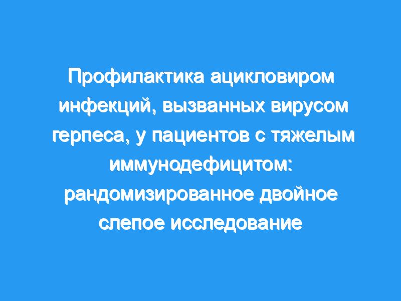 Двадцать пациентов, перенесших аллогенную трансплантацию костного мозга, и 39 пациентов, получавших химиотерапию для индукции ремиссии по поводу острого лейкоза, были включены в двойное слепое плацебо-контролируемое стратифицированное исследование профилактики ацикловиром вирусной инфекции группы герпеса.