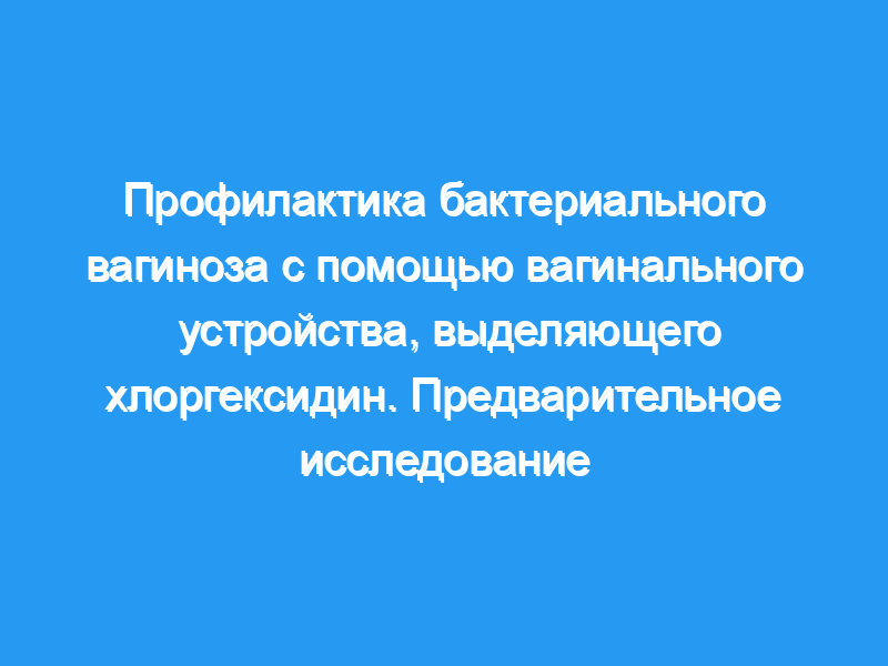 Оценка клинических, микробиологических и субъективных постменструальных данных, касающихся бактериального вагиноза у пациенток, использующих вагинальное устройство, выделяющее хлоргексидин. Двадцать женщин с признаками и симптомами вагиноза перед менструацией были рандомизированы для использования вагинальных тампонов, высвобождающих хлоргексидин, или нейтральных тампонов (плацебо). Они были повторно оценены после менструации.