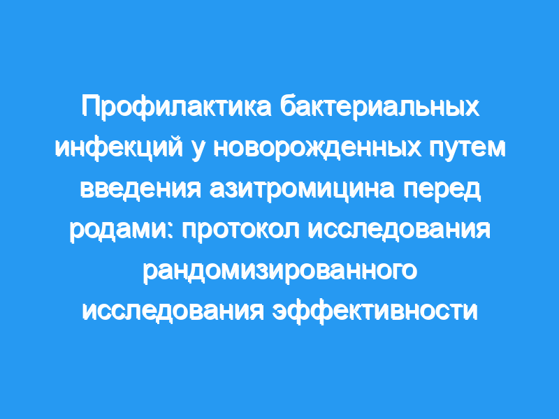 Это исследование, подтверждающее концепцию, для оценки влияния профилактического лечения женщин антибиотиками во время родов на бактериальные инфекции у новорожденных. Если исследование подтвердит эту гипотезу, следующим шагом будет оценка влияния этого вмешательства на неонатальный сепсис. Предлагаемое вмешательство должно быть легко осуществимым в развивающихся странах. Пробная регистрация: ClinicalTrials.gov Идентификатор — NCT01800942-Впервые получен: 26 февраля 2013 года.