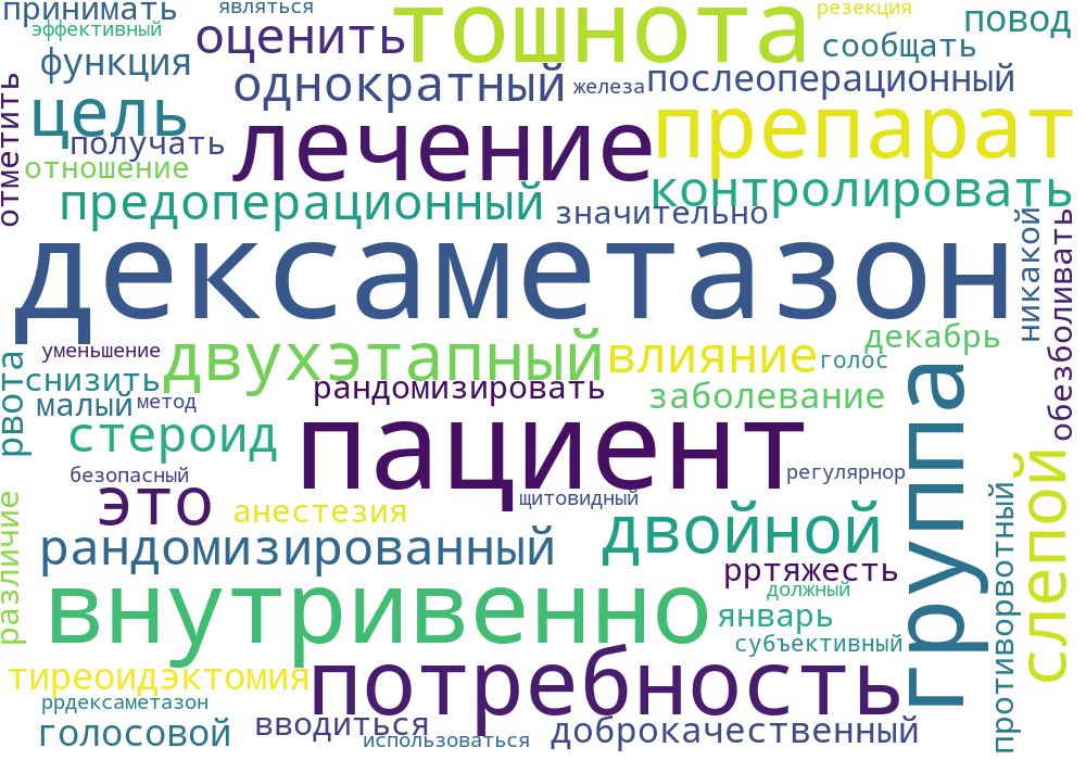 Тяжесть тошноты и потребность в противорвотных препаратах были снижены у пациентов, получавших дексаметазон (р = 0,0001). Пациенты, принимавшие дексаметазон, сообщали о значительно меньшей боли (р = 0,008), потребность в обезболивающих препаратах была ниже в группе дексаметазона (р = 0,048). Никаких различий не было отмечено в отношении субъективного анализа голоса (р = 0,693).