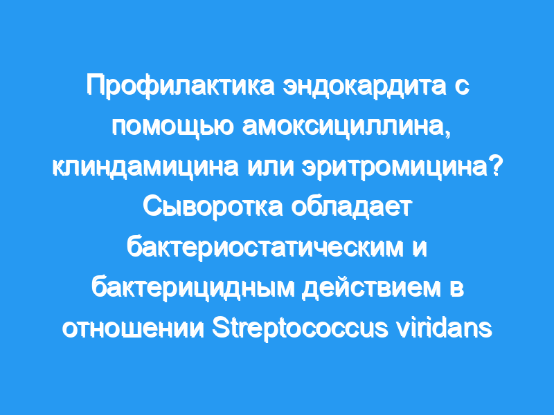 Эффективность антибиотикопрофилактики эндокардита оценивали путем тестирования бактерицидного и бактериостатического действия в сыворотке крови 12 здоровых добровольцев, которые принимали рекомендованные антибиотики в соответствии с установленными рекомендациями.