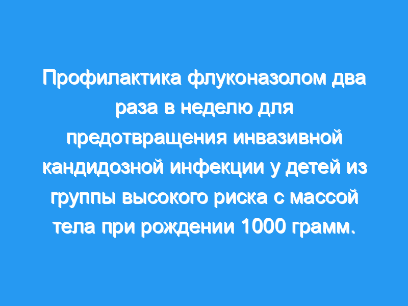 Профилактический прием флуконазола два раза в неделю может снизить колонизацию кандидозом и инвазивную инфекцию, стоимость и воздействие на пациента у недоношенных детей высокого риска с массой тела менее 1000 грамм при рождении. Мы предполагаем, что более низкие и менее частые дозы могут задержать или предотвратить появление устойчивости к противогрибковым препаратам.