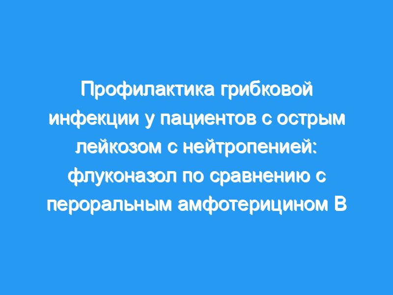 Сравнить эффективность и переносимость флуконазола и перорального амфотерицина В в профилактике грибковой инфекции у пациентов с нейтропенией и острым лейкозом. Дизайн: Рандомизированное, контролируемое, многоцентровое исследование.