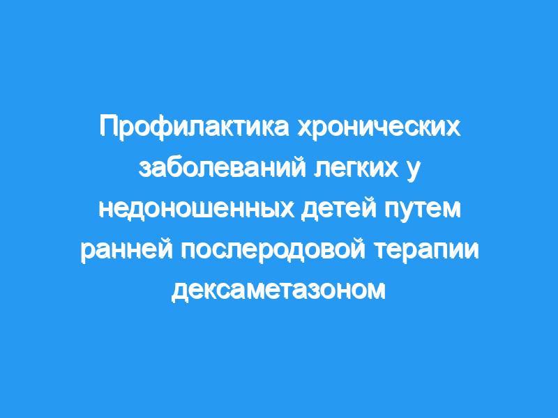 Мы пришли к выводу, что ранняя послеродовая терапия дексаметазоном потенциально эффективна в уменьшении CLD у недоношенных детей.