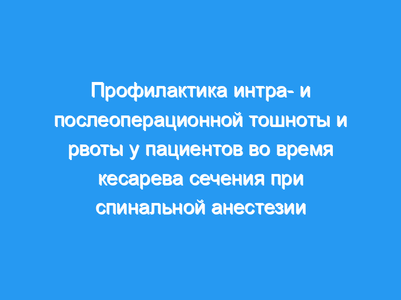В этой статье описывается рандомизированное проспективное исследование, проведенное с участием 308 пациентов, перенесших кесарево сечение под спинальной анестезией в одной больнице в период с 2010 по 2012 год, чтобы найти подходящую противорвотную стратегию для этих пациентов.