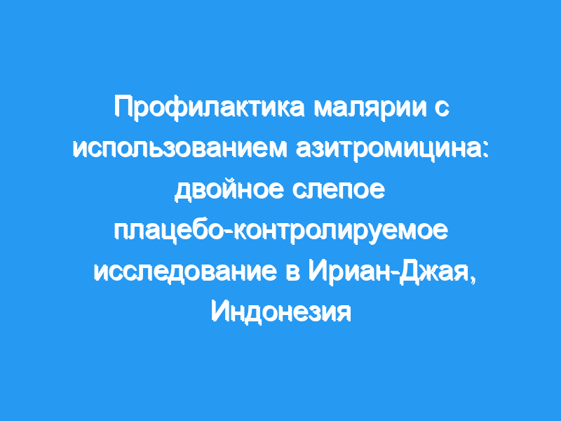 Профилактическая эффективность азитромицина против P. falciparum у кенийцев с иммунитетом к малярии составила 83%. Мы провели двойное слепое плацебо-контролируемое исследование для определения профилактической эффективности азитромицина против малярии P. falciparum с множественной лекарственной устойчивостью и малярии Plasmodium vivax, устойчивой к хлорохину, у взрослых индонезийцев с ограниченным иммунитетом.