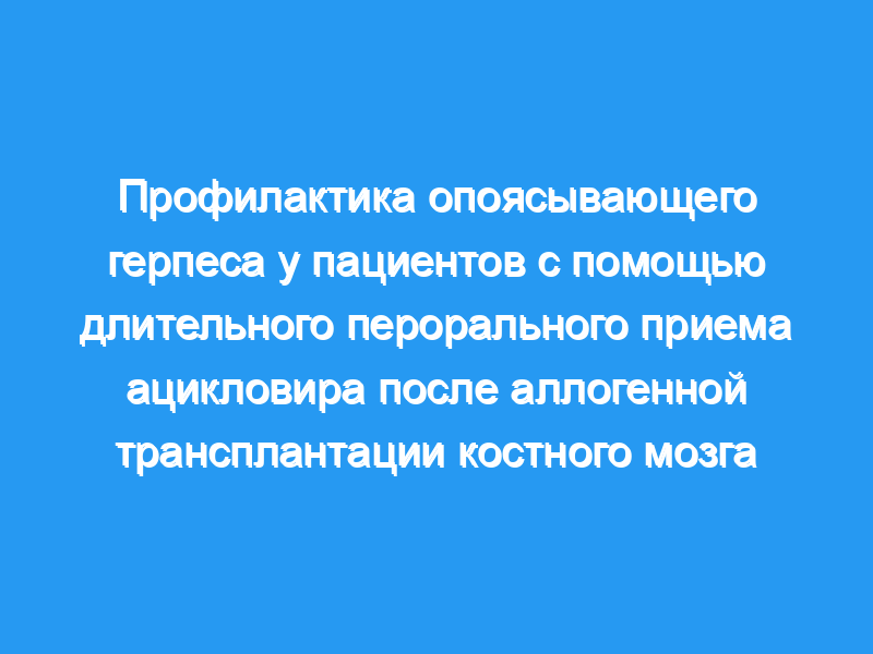 Это исследование показывает, что пероральный ацикловир способен предотвращать инфекцию опоясывающего лишая во время его приема, после прекращения медикаментозного лечения возникают инфекции.