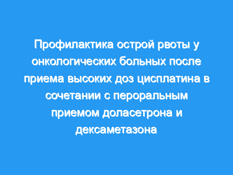 Доласетрон — это противорвотное средство, антагонист 5-НТ3, с активными пероральными и внутривенными препаратами. Эффекты этого класса усиливаются при сочетании с дексаметазоном. В этом исследовании проверялась способность комбинации перорального доласетрона 200 мг и перорального дексаметазона 20 мг предотвращать острую рвоту у онкологических больных, получавших начальный цисплатин в дозах >, or = 70 мг/м2. Кроме того, пациенты были рандомизированы для получения второй дозы препарата через 16 часов для улучшения контроля острых симптомов. Пациенты и методы: Всего было обследовано 75 пациентов, 38 из которых были рандомизированы на режим приема двух доз. Тридцать пять процентов составляли женщины, а у 77% был рак легких.