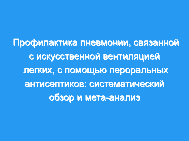 Исследования были идентифицированы с помощью PubMed, CINAHL, Web of Science, CENTRAL и дополнительных ручных поисков. Приемлемыми исследованиями были рандомизированные исследования взрослых пациентов с искусственной вентиляцией легких, получавших лечение полости рта хлоргексидином или повидон-йодом. Относительные риски (RR) и 95% CIs рассчитывали с помощью модели Мантеля-Хензеля, а неоднородность оценивали с помощью критерия I(2). Результаты: было включено 14 исследований (2481 пациент), 12 из которых изучали действие хлоргексидина (2341 пациент) и два — повидон-йода (140 пациентов). В целом, применение антисептиков привело к значительному снижению риска пневмонии, связанной с ИВЛ (ОР 0,67, 95% ДИ 0,50-0,88, р=0,004). Было показано, что применение хлоргексидина эффективно (ОР 0,72, 95% ДИ 0,55-0,94, р=0,02), тогда как эффект, возникающий в результате применения повидон-йода, остается неясным (ОР 0,39, 95% ДИ 0,11-1,36, р=0,14). Гетерогенность была умеренной (I(2)=29%, p=0,16) для испытаний с использованием хлоргексидина и высокой (I(2)=67%, p=0,08) для испытаний, оценивающих использование повидон-йода. Благоприятные эффекты были более выражены в анализах подгрупп для 2% хлоргексидина (ОР 0,53, 95% ДИ 0,31-0,91) и в кардиохирургических исследованиях (ОР 0,41, 95% ДИ 0,17-0,98). Интерпретация: Этот анализ показал благоприятный эффект перорального применения антисептиков в профилактике пневмонии, связанной с искусственной вентиляцией легких. Клиницисты должны учитывать эти данные при оказании помощи полости рта интубированным пациентам. Финансирование: Отсутствует.