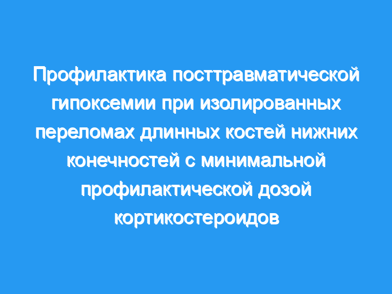 Наши результаты подтверждают профилактическое назначение метилпреднизолона в малых дозах для предотвращения посттравматической гипоксемии и, возможно, ФЭС у пациентов с изолированными переломами длинных костей нижних конечностей, особенно когда ранняя стабилизация перелома невозможна..