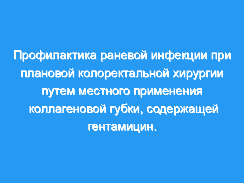 Мы сравнили частоту послеоперационной раневой инфекции у 221 пациента с колоректальной хирургией, рандомизированных для получения системного гентамицина/метронидазола с (группа I, n = 107) или без (группа II, n = 114) гентамицин-коллагенового шпонга.