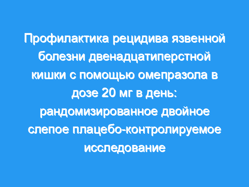 Мы сообщаем о первом двойном слепом плацебо-контролируемом исследовании, в котором оценивалась эффективность и безопасность омепразола в дозе 20 мг ежедневно при поддерживающем лечении язвы двенадцатиперстной кишки.