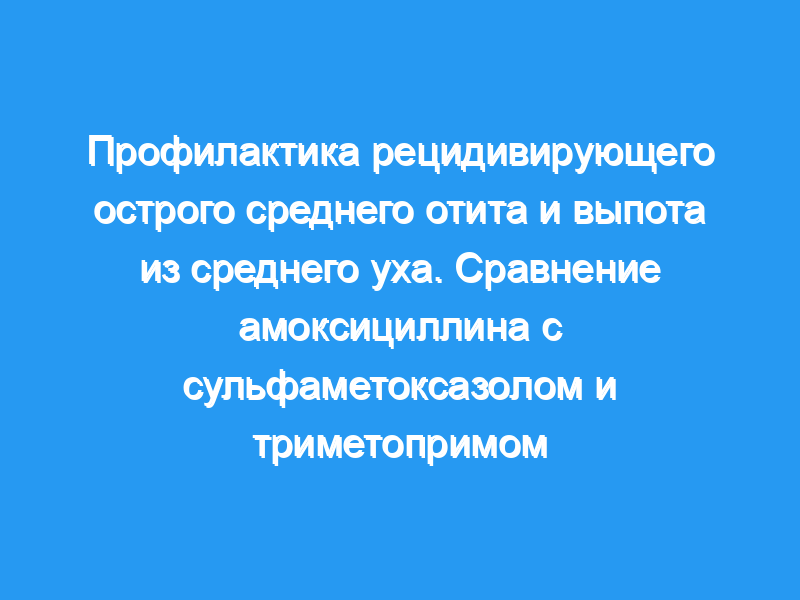 Мы сравнили эффективность амоксициллина с эффективностью комбинированного препарата сульфаметоксазола и триметоприма в снижении рецидивов острого среднего отита (ООМ) в одиночном слепом рандомизированном плацебо-контролируемом исследовании с участием 96 детей.