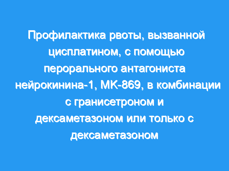 Антагонист NK1-рецептора MK-869 (L-754 030) продемонстрировал противорвотную активность у людей, получающих химиотерапию. Цели настоящего исследования включали первую оценку перорального применения MK-869 плюс дексаметазон по сравнению с антагонистом 5HT(3) плюс дексаметазон для профилактики острой и отсроченной рвоты после приема высоких доз цисплатина. Кроме того, исследование стремилось подтвердить, что добавление MK-869 к антагонисту 5HT(3) плюс дексаметазон было более эффективным, чем просто антагонист 5HT (3) плюс дексаметазон для профилактики острой и отсроченной рвоты.