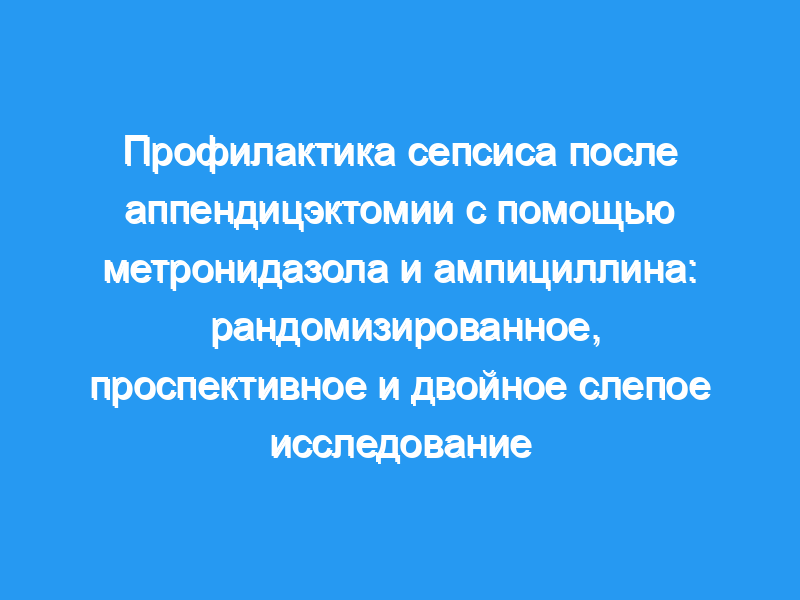 Двести восемьдесят три пациента были допущены к рандомизированному, проспективному и двойному слепому исследованию эффекта добавления ампициллина к метронидазолу в профилактике сепсиса после аппендицэктомии.