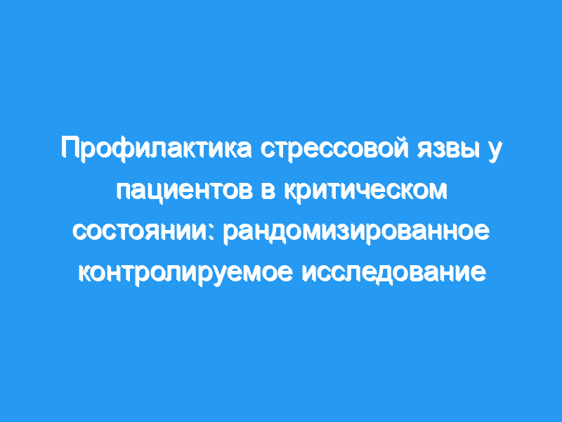 Тяжелобольные пациенты, особенно нуждающиеся в искусственной вентиляции легких или страдающие коагулопатией, подвергаются повышенному риску желудочно-кишечного кровотечения, связанного со стрессом. Существуют противоречивые данные об эффективности и частоте осложнений различных схем профилактики. Методология: В нашем одноцентровом рандомизированном плацебо-контролируемом исследовании приняли участие 287 пациентов с высоким риском кровотечения из верхних отделов желудочно-кишечного тракта, связанного со стрессом (>, 48-часовая искусственная вентиляция легких, коагулопатия). Мы сравнили 3 профилактических режима (ингибитор протонной помпы — омепразол 40 мг внутривенно один раз в день, n=72, антагонисты Н2 — фамотидин 40 мг два раза в день, n=71, и сукральфат 1 г каждые 6 часов, n=69) с плацебо (n=75) у пациентов с травма или после серьезной операции.