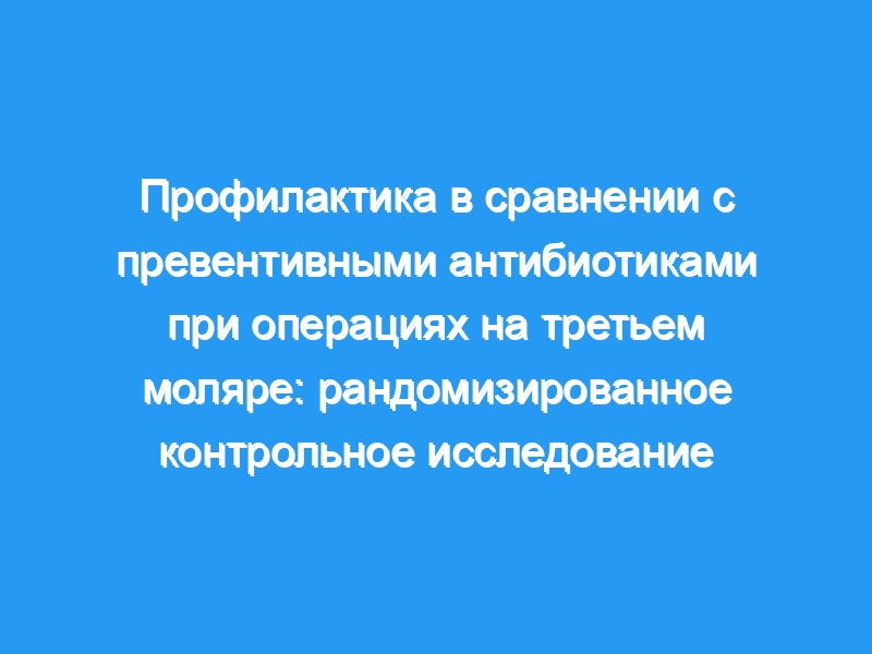 Это исследование было проведено для сравнения эффективности предоперационных однократных болюсных антибиотиков с 5-дневным послеоперационным режимом приема антибиотиков в уменьшении боли, отека и тризма, инфекции в месте операции (SSI) и альвеолярного остеита (АО) после операции на третьем моляре. Пациенты и методы: Был проведен рандомизированный эксперимент с участием восьмидесяти четырех пациентов. Пациенты были разделены на две группы, состоящие из 42 пациентов в каждой. Предоперационной группе давали пероральный болюс 2 г капсул амоксициллина и 1 г таблеток метронидазола за час до экстракции, в то время как в послеоперационной группе пятидневный режим приема внутрь 500 мг капсул амоксициллина три раза в день и 400 мг таблеток метронидазола три раза в день. Между группами сравнивали возникновение послеоперационной боли, отека, тризма, SSI и АО.