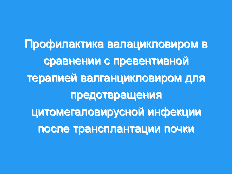 В заключение, превентивная терапия валганцикловиром и профилактика валацикловиром одинаково эффективны в профилактике ЦМВ-инфекции после трансплантации почки.