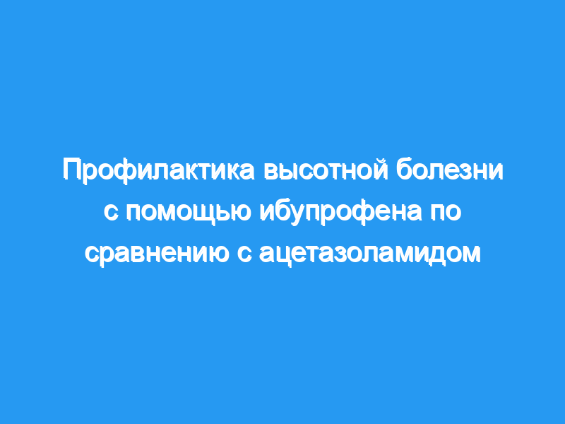 Острая горная болезнь — обычное явление при путешествиях на большие высоты. Хотя предыдущие исследования ибупрофена показали эффективность для профилактики острой горной болезни, рекомендации были ограниченными, поскольку ибупрофен не сравнивался непосредственно с ацетазоламидом до настоящего исследования.