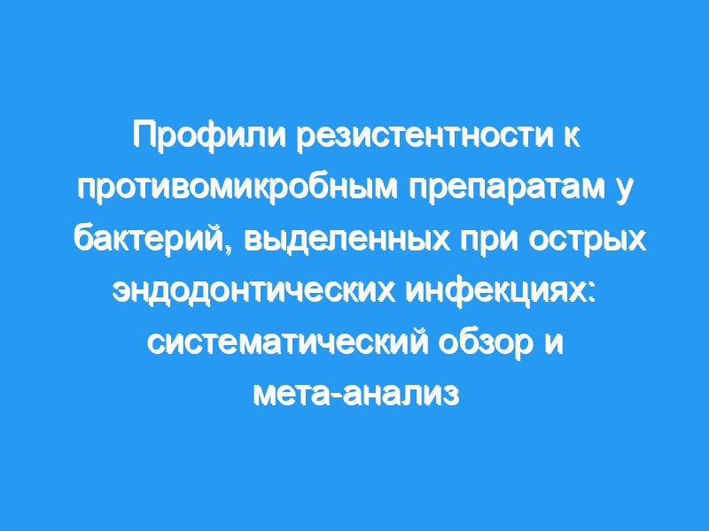 Был проведен систематический обзор и мета-анализ для оценки показателей устойчивости к противомикробным агентам. в клинических исследованиях, которые изолировали бактерии от острой эндодонтической инфекции.
