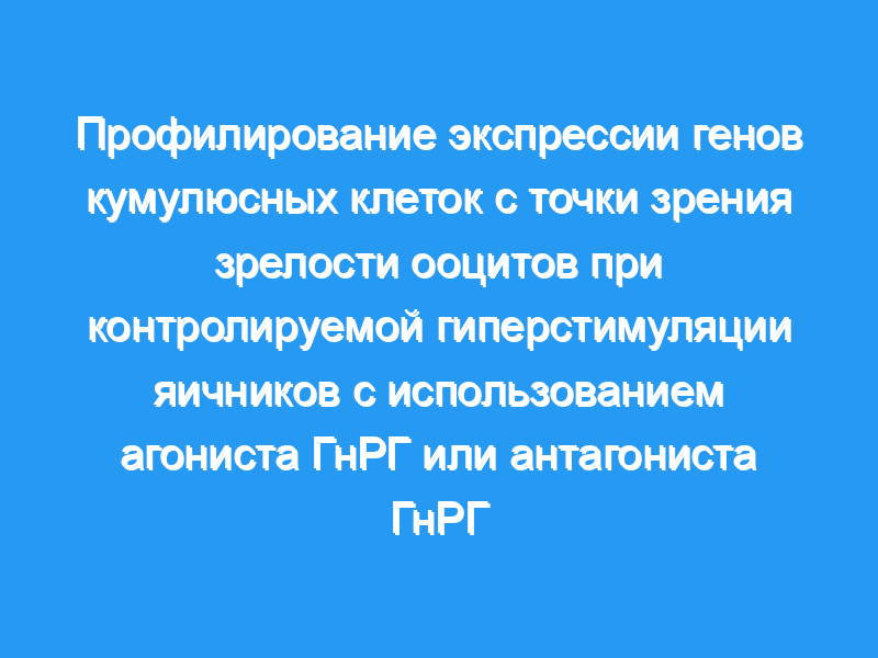 Мы применили профилирование экспрессии генов Affymetrix в CC ооцитов на разных стадиях созревания с использованием либо агонистов GnRH, либо антагонистов GnRH.