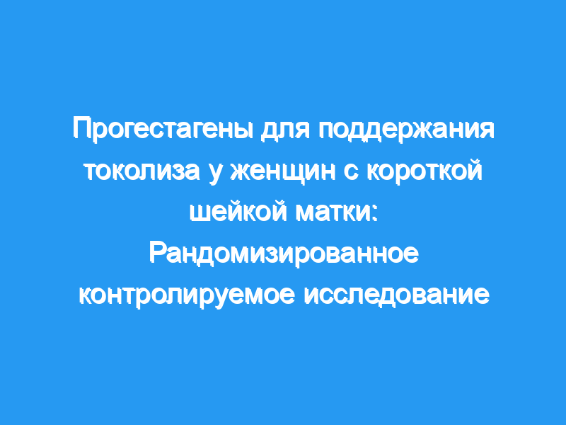 Применение прогестагенов для поддержания токолиза у женщин с короткой шейкой матки не снижало частоту преждевременных родов. Регистрация клинического испытания: ClinicalTrials.gov , NCT01178788.