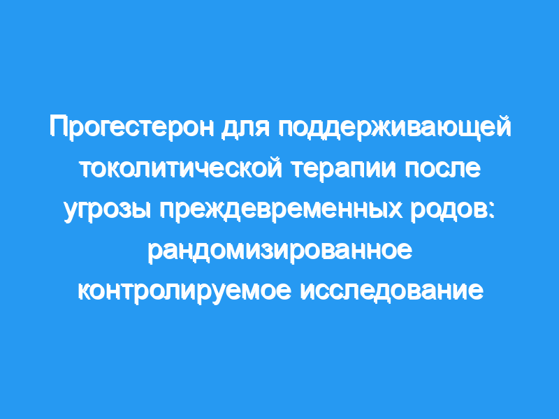 Применение вагинальных суппозиториев с прогестероном после успешного парентерального токолиза ассоциировалось с более длительной задержкой, предшествующей родам, но не уменьшало частоту повторной госпитализации в связи с преждевременными родами.