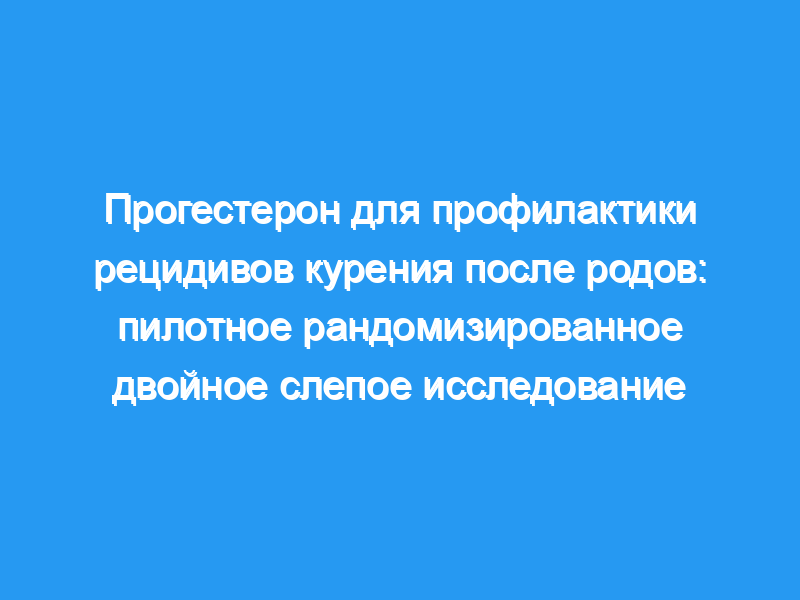 Почти половина женщин, которые курили до зачатия, бросили курить во время беременности, когда уровень эндогенного прогестерона высок. Однако, по крайней мере, половина из них возобновляет курение до беременности в течение нескольких недель после родов и при снижении уровня прогестерона. В текущем пилотном исследовании проверялась целесообразность и предварительная эффективность послеродовой заместительной терапии прогестероном для предотвращения рецидива курения у женщин в послеродовом периоде с курением до беременности в анамнезе.