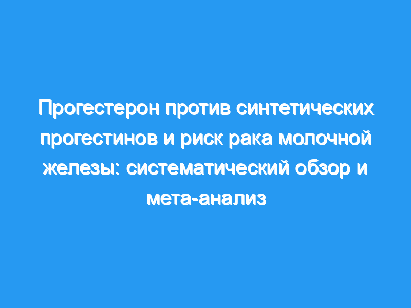 Применение гормональной терапии в период менопаузы (МГТ), содержащей эстроген и синтетический прогестин, связано с повышенным риском развития рака молочной железы. Неясно, снижает ли прогестерон в сочетании с эстрогеном риск развития рака молочной железы. Ограниченные данные свидетельствуют о различиях между прогестероном и прогестинами в отношении факторов риска сердечно-сосудистых заболеваний, включая метаболизм холестерина и глюкозы. Приводит ли это к различиям в сердечно-сосудистых исходах, остается неясным. Мы провели систематический обзор и мета-анализ, чтобы обобщить существующие данные о влиянии прогестерона по сравнению с синтетическими прогестинами, каждый из которых в сочетании с эстрогенами, на риск рака молочной железы и сердечно-сосудистых событий.