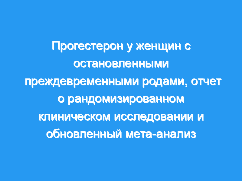 Рандомизированное двойное слепое клиническое исследование ежедневного применения 200 мг вагинального прогестерона у женщин с остановленными преждевременными родами и обновленный мета-анализ.