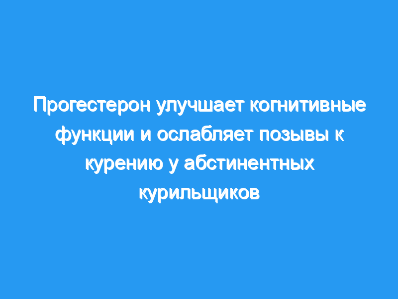 Лечение прогестероном в дозе 200 мг/сут значительно улучшило когнитивные показатели в тесте Stroop и тесте замены цифровых символов. Прогестерон в дозе 400 мг/сут был связан с уменьшением тяги к курению, но не изменил привычку к курению.