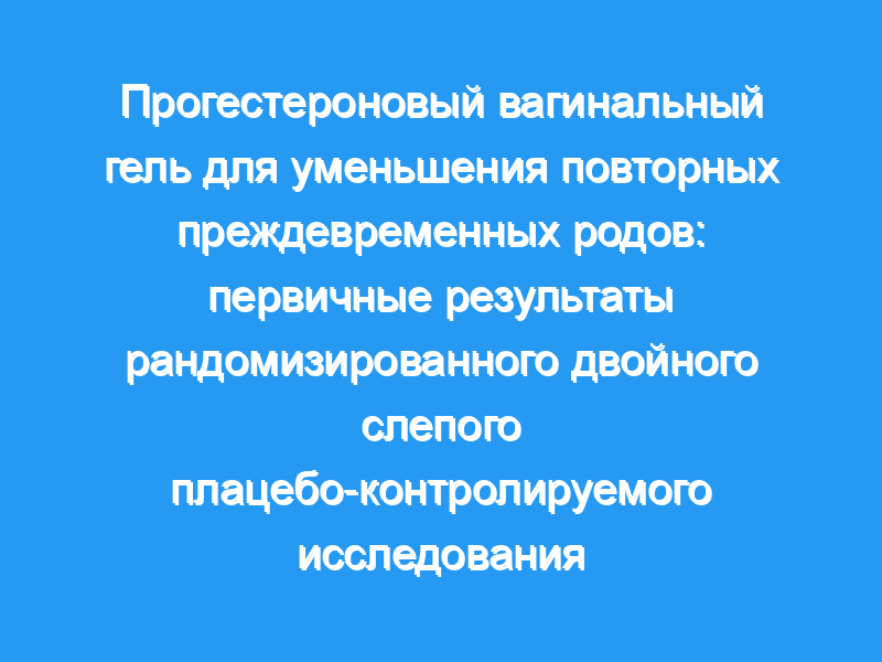В этом рандомизированном двойном слепом плацебо-контролируемом многонациональном исследовании приняли участие и были рандомизированы 659 беременных женщин с самопроизвольными преждевременными родами в анамнезе. Между 18 + 0 и 22 + 6 неделями беременности пациентки были рандомизированы на однократное ежедневное лечение либо прогестероновым вагинальным гелем, либо плацебо до родов, 37 недель беременности или развития преждевременного разрыва плодных оболочек. Первичным исходом были преждевременные роды на <,/= 32 неделе беременности. Исследование было проанализировано с использованием стратегии «намерение лечить».